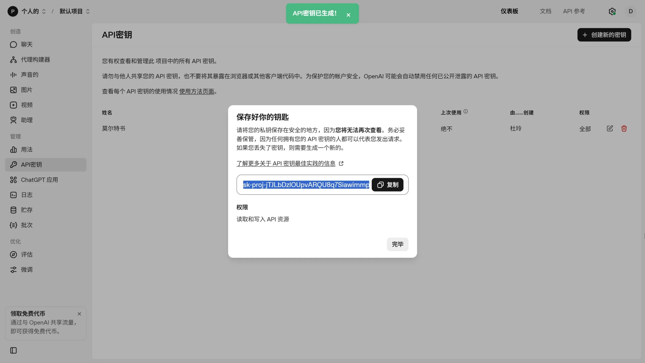 Next, you need to configure the API key for your model. This is required regardless of the model you choose, unless you are deploying a local model yourself.In-depth exploration