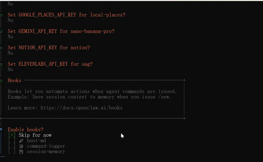 After executing the one-click installation command, the following options will appear:In-depth exploration